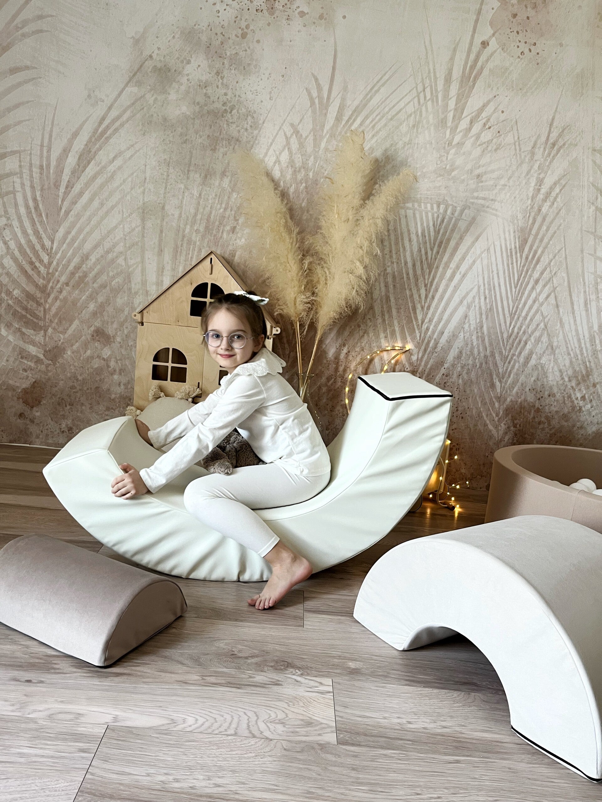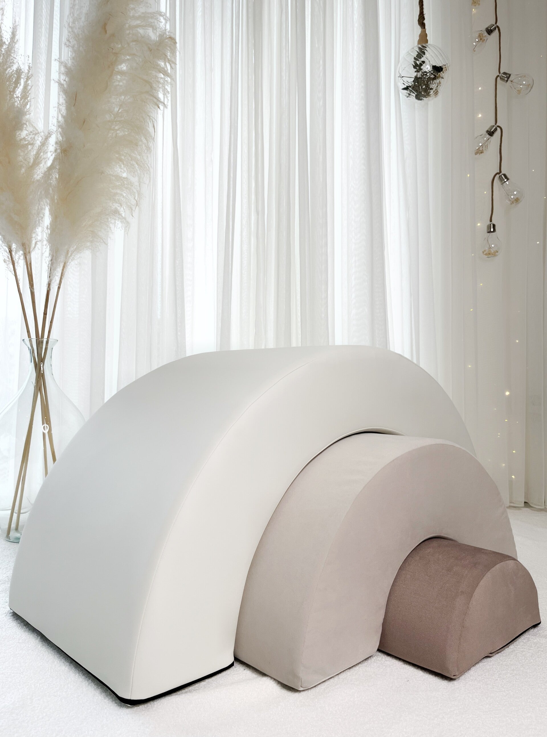 De Regenboog foam blokken zijn in drie bijpassende tinten beige en zijn met eco-leer & velvet gestoffeerd. In combinatie met de velvet beige ballenbak is de set een plaatje om te zien & om mee te spelen natuurlijk!